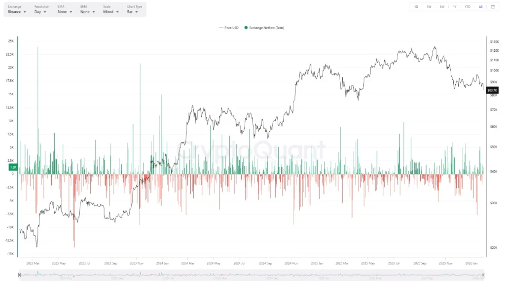Similarly, netflow data adds further context to the decline. Short-term inflow spikes reappeared during the decline, indicating that some holders moved supply onto exchanges as volatility increased.