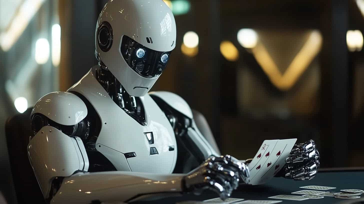 A robot playing cards on a table