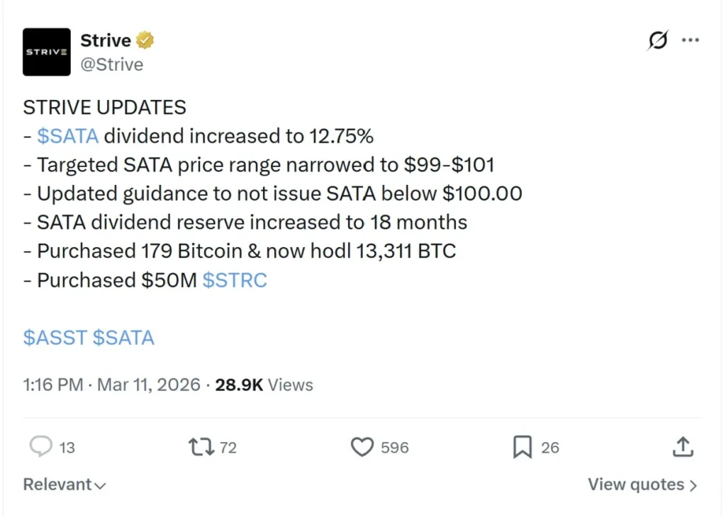 Just recently, Nasdaq-listed Strive bought 179 BTC, bringing its total holdings to about 13,311 BTC.