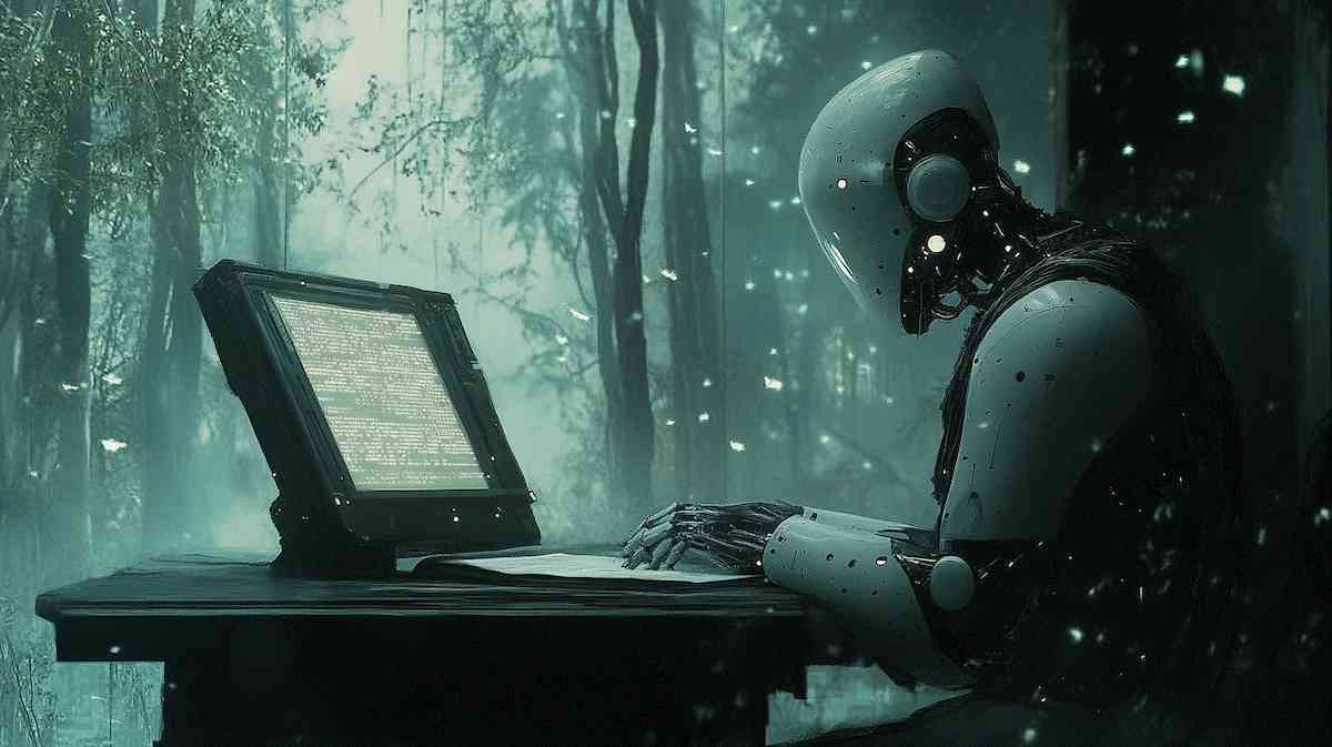A robot typing on a computer