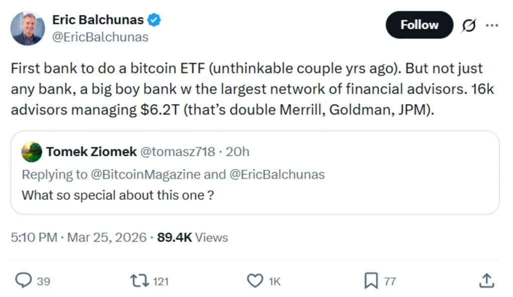 Significance of Morgan Stanley BTC ETF. Source: Eric Balchunas/X