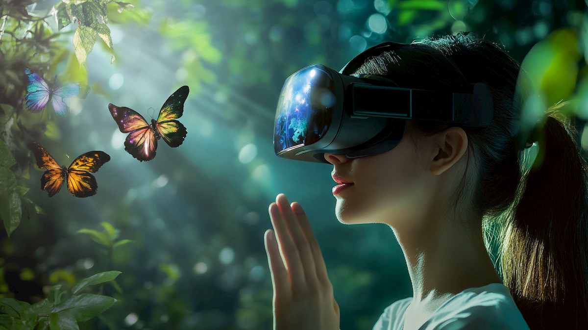 A woman wearing augmented reality goggles