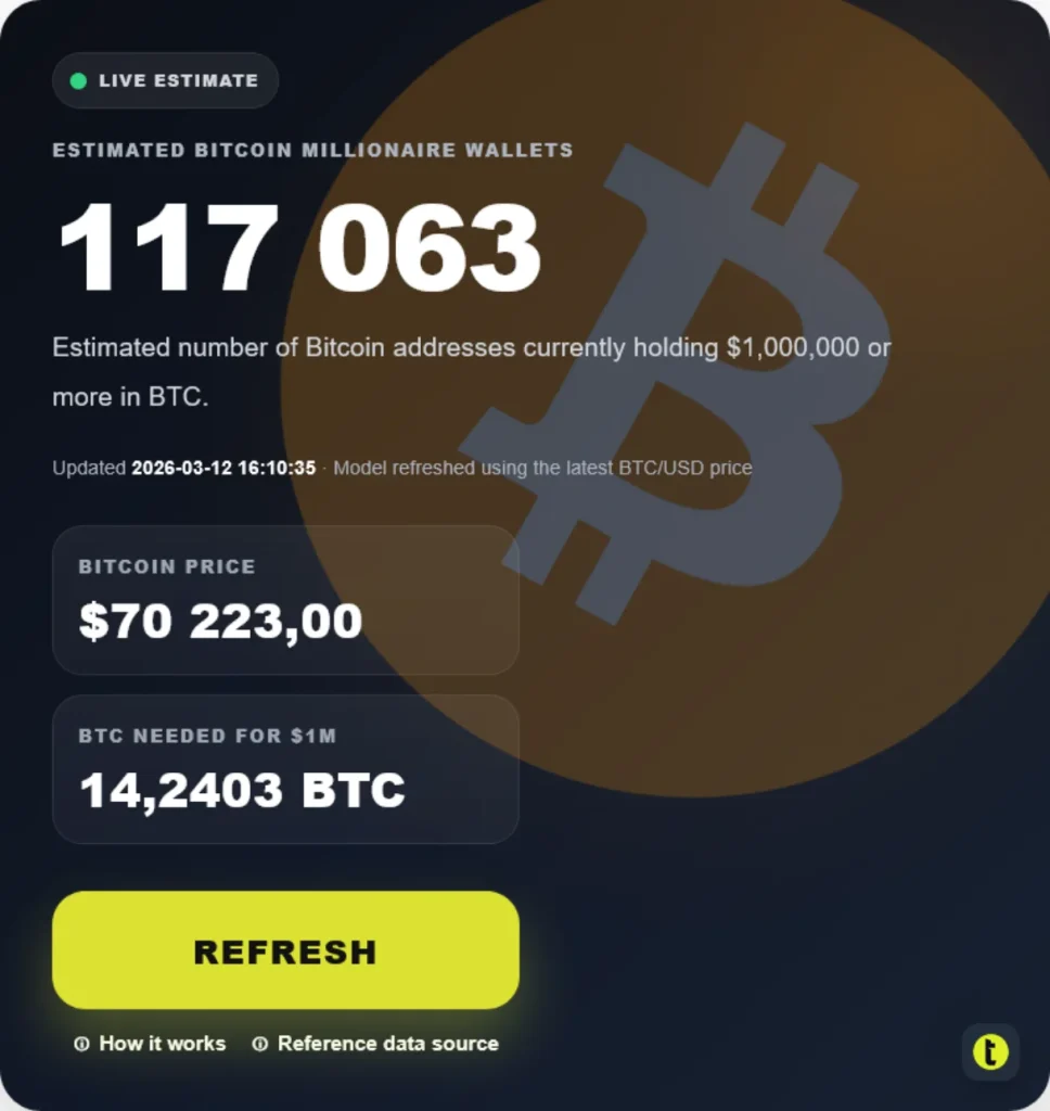 The idea behind the tracker is straightforward. When Bitcoin rises, more wallets cross the million-dollar threshold. When the market cools down, that number can drop just as quickly.